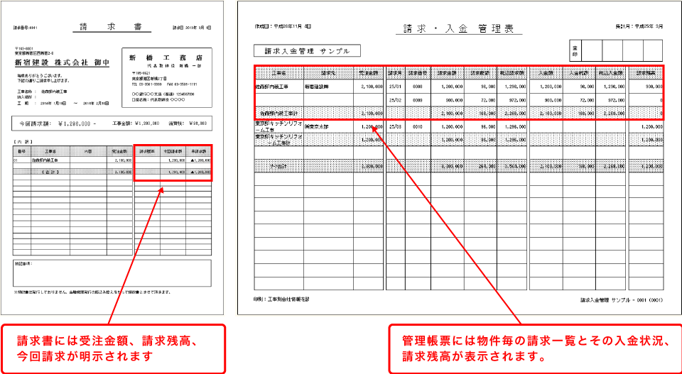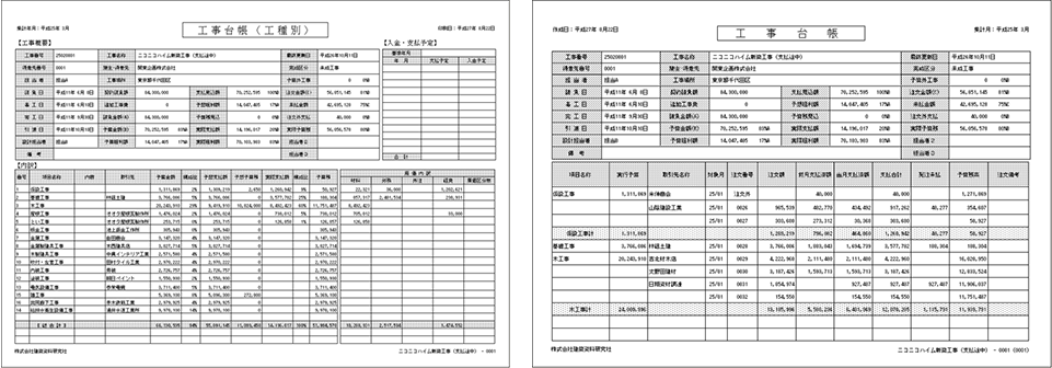 工事台帳は予算管理の要です。ここにすべての情報が集約されています。工事完成後の記録としてはもちろん、工事中もチェック・報告用として利用できます。